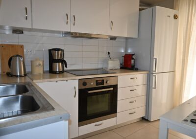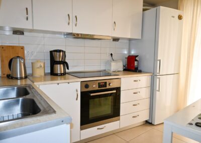 The apartment features a fully equipped kitchen with a stovetop, fridge, dining area, and all essential cookware. Whether you want to prepare a homemade meal, enjoy a quick breakfast, or simply relax with a coffee, the space offers everything you need for a comfortable and convenient stay.