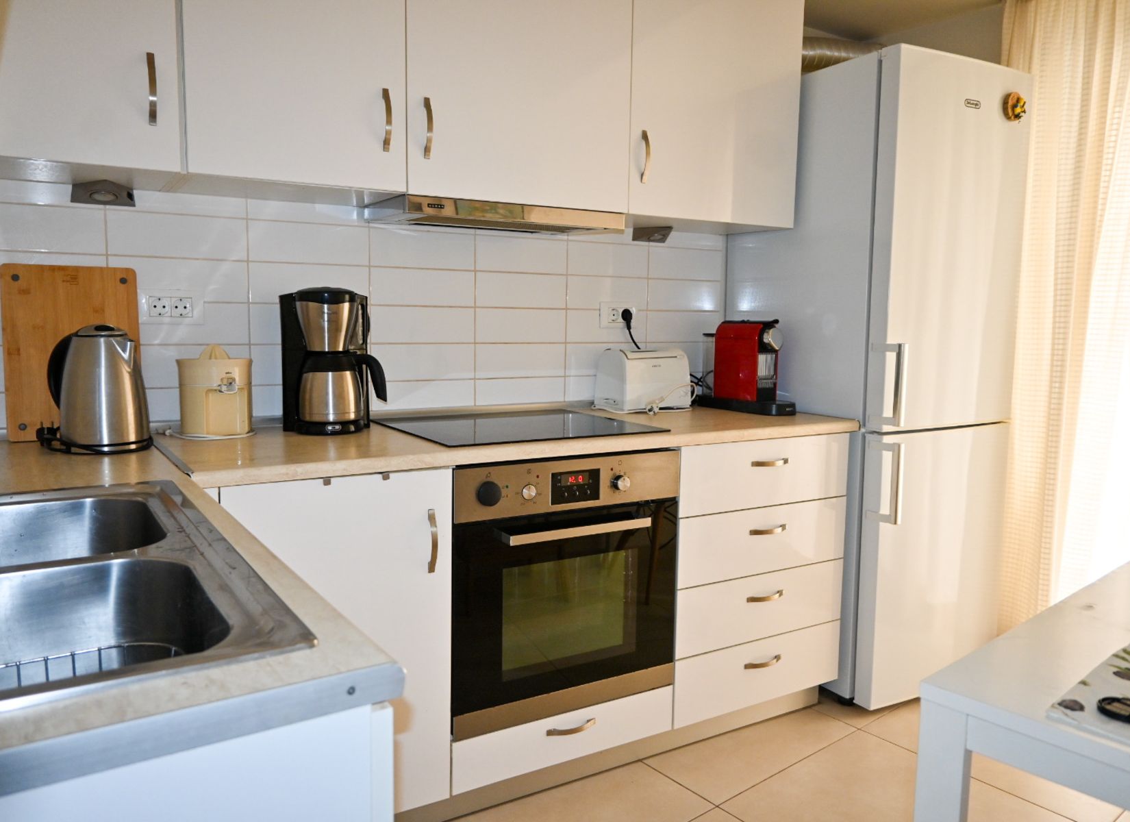 The apartment features a fully equipped kitchen with a stovetop, fridge, dining area, and all essential cookware. Whether you want to prepare a homemade meal, enjoy a quick breakfast, or simply relax with a coffee, the space offers everything you need for a comfortable and convenient stay.